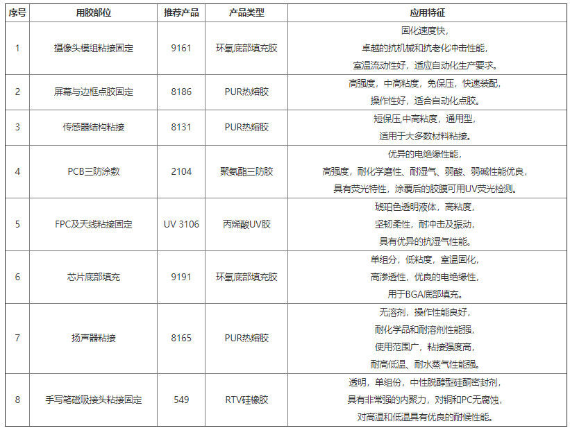 目前,超薄、觸屏、智能系統(tǒng)的MID產(chǎn)品平板&筆記本電腦越來越受到消費(fèi)者的青睞。隨著技術(shù)進(jìn)步,平板和筆記本電腦對材料、工藝、外觀、性能等提出了更高的要求。在設(shè)計(jì)與制造的過程中,傳統(tǒng)的螺紋和卡扣已很難滿足其超薄超輕、立體美觀的特點(diǎn)。為了實(shí)現(xiàn)這些特點(diǎn),組裝制程中越來越多采用膠粘劑來粘接基材,貼合組件。
